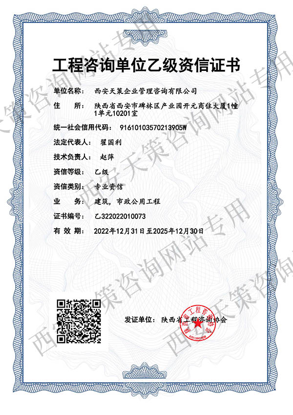 工程咨询乙级资质证书