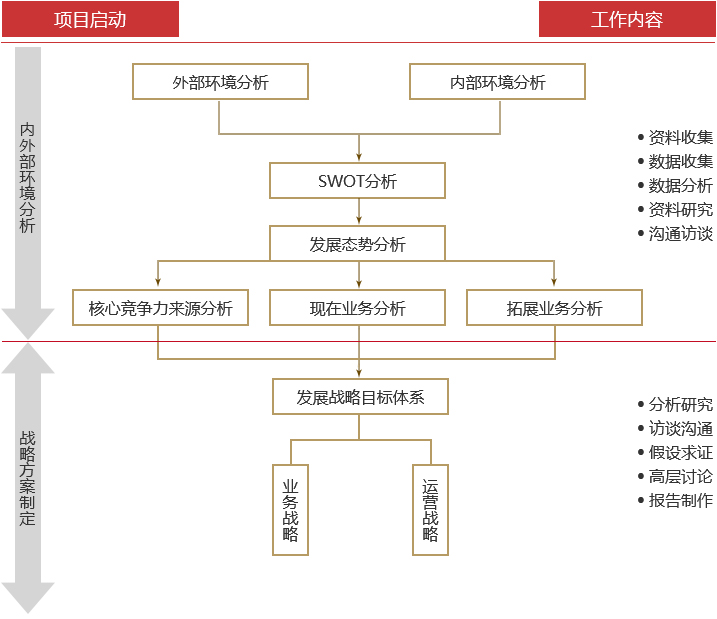 天策咨询作为可信赖的战略咨询机构,将为企业发展构建愿景,制定战略方案,重新定义企业价值延续与创造之间的动态变化,打造高效运营组织架构,提升企业经营管理的灵活性和效率,同时加强战略目标实施的可操作性和可控性,协助客户实施战略,在行业竞争中取得竞争优势。